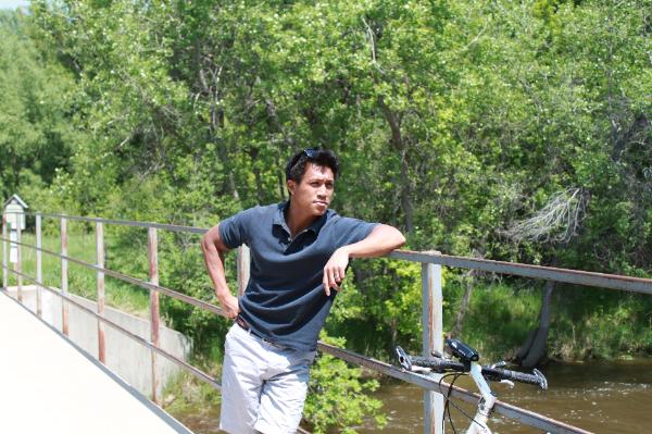 lex relaxing above the Cache La Poudre river. Fort Collins, CO.